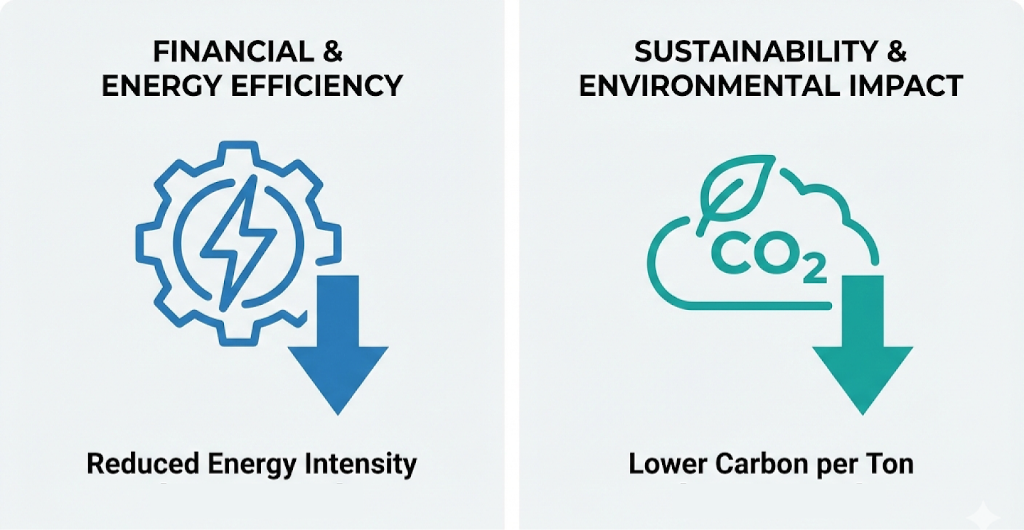 • Lower carbon intensity per ton of production